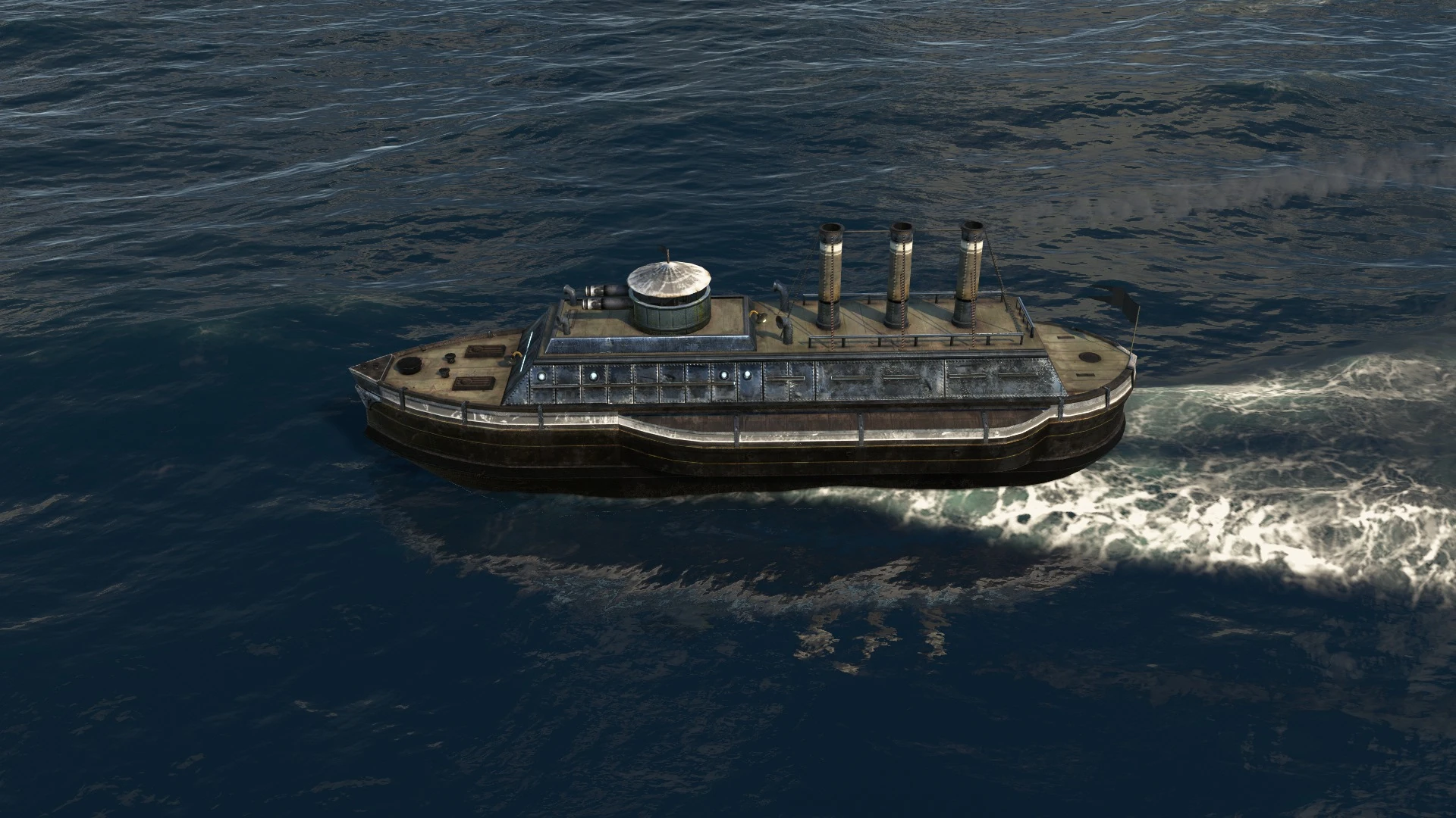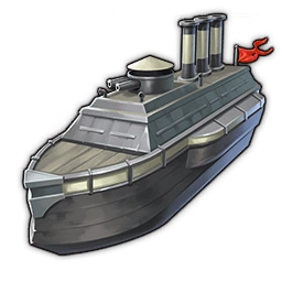The monitor is a heavily armored steam-powered military ship capable to carry a low amount of cargo. It is armed with a heavy mid-range turret.