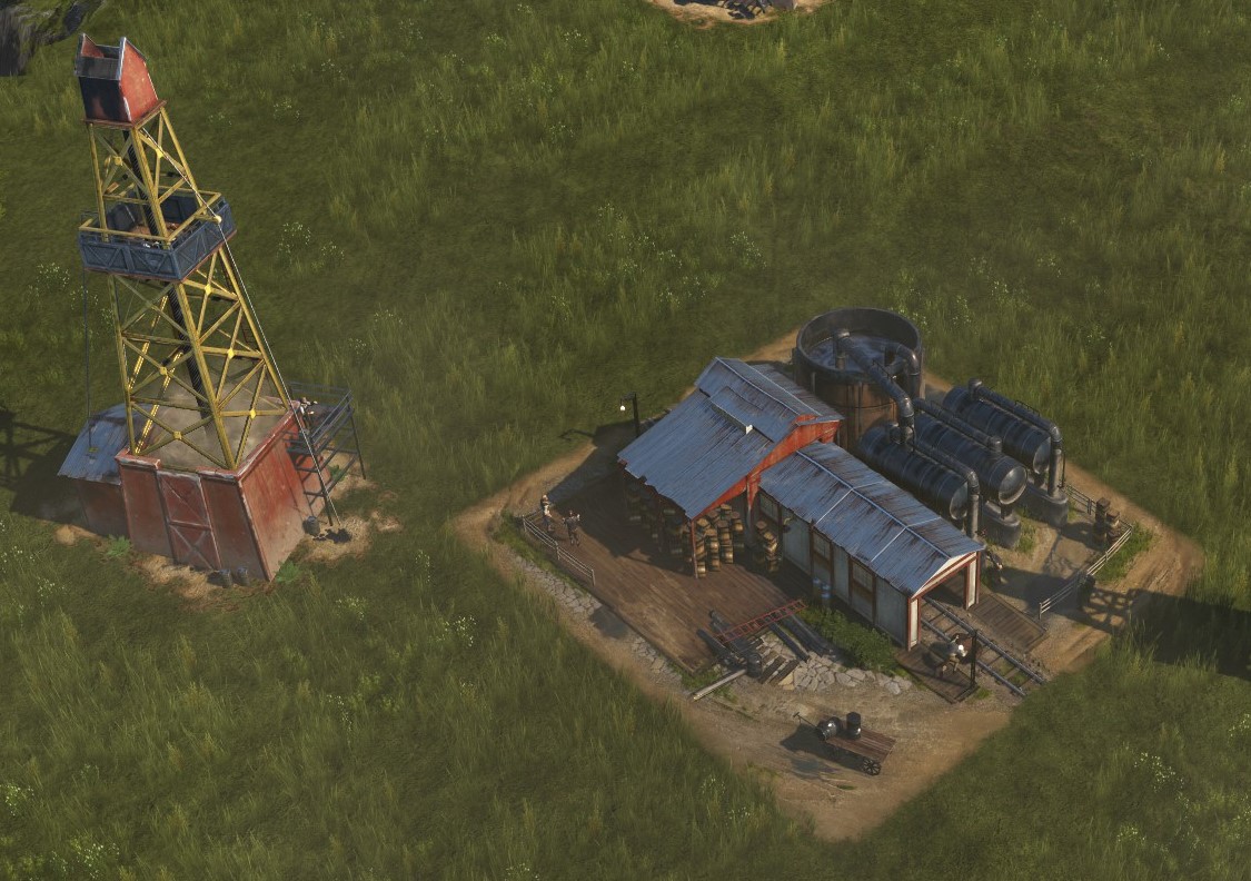 Oil Well is a resource extraction module for oil refineries, which enables the production of oil. Each oil well increases the base productivity of the refinery it belongs to by +100%, without affecting the maintenance cost, attractiveness impact or workforce requirement of the refinery. Oil well has to be built on top of oil deposits located within the radius of the refinery, the well's size is 3x3 since this is the size of the deposits. It does not need any road connection and cannot be affected by city incidents.
