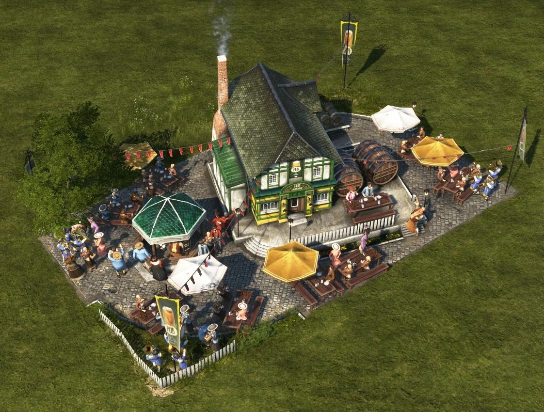Worker Residences are in the full range of the pub, each of them gains 6 happiness and generates more income depending on game settings:
